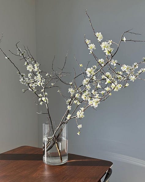 These more interesting varieties are not always available at grocery stores, but your local flower shop will likely carry at least double tulips this time of year. If you want something a little more sculptural, flowering branches also make a stunning centrepiece.