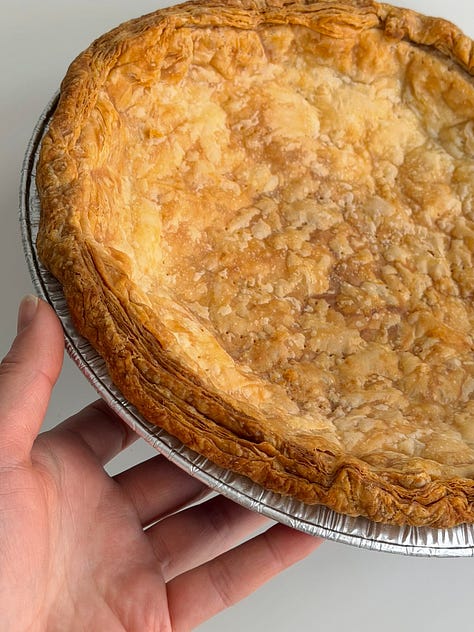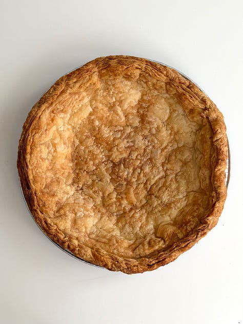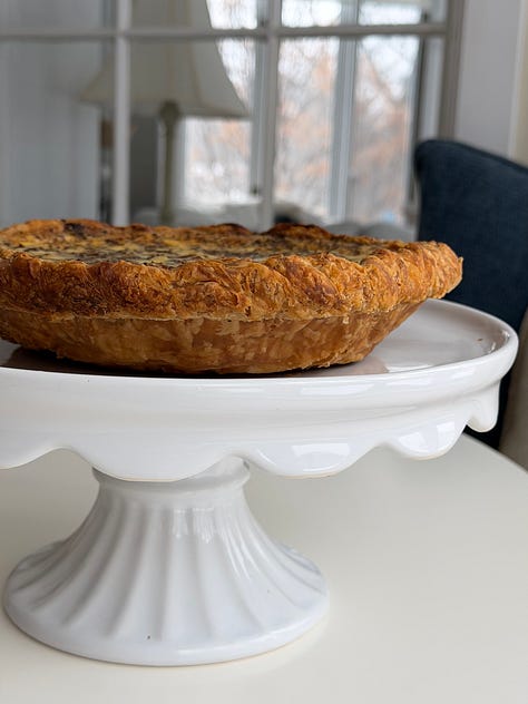 Speaking of pastry, a soggy, limp crust is your biggest enemy here. Luckily, it’s not one I have a problem with, for a few reasons. The biggest mitigator is baking in an aluminum pie tin. As much as I love the idea of baking the quiche in a pretty, decorative pie dish, I have started exclusively baking pastry in aluminum ones. Not only are they inexpensive, make clean up easier, and are very easy to unmold, but you will also get a perfectly golden brown crust. Aluminum conducts heat quickly and evenly. I also place it on a baking sheet that has been in the oven while it preheats, so the bottom of the crust gets immediate contact with a very hot surface. You can easily remove it after baking and place it on a pretty serving dish (or even back in a prettier pie dish, nobody needs to know your secret). I also like to brush a very thin layer of Dijon all over the baked crust, not only for flavour, but because it helps act as a little barrier between the wetness of the filling.