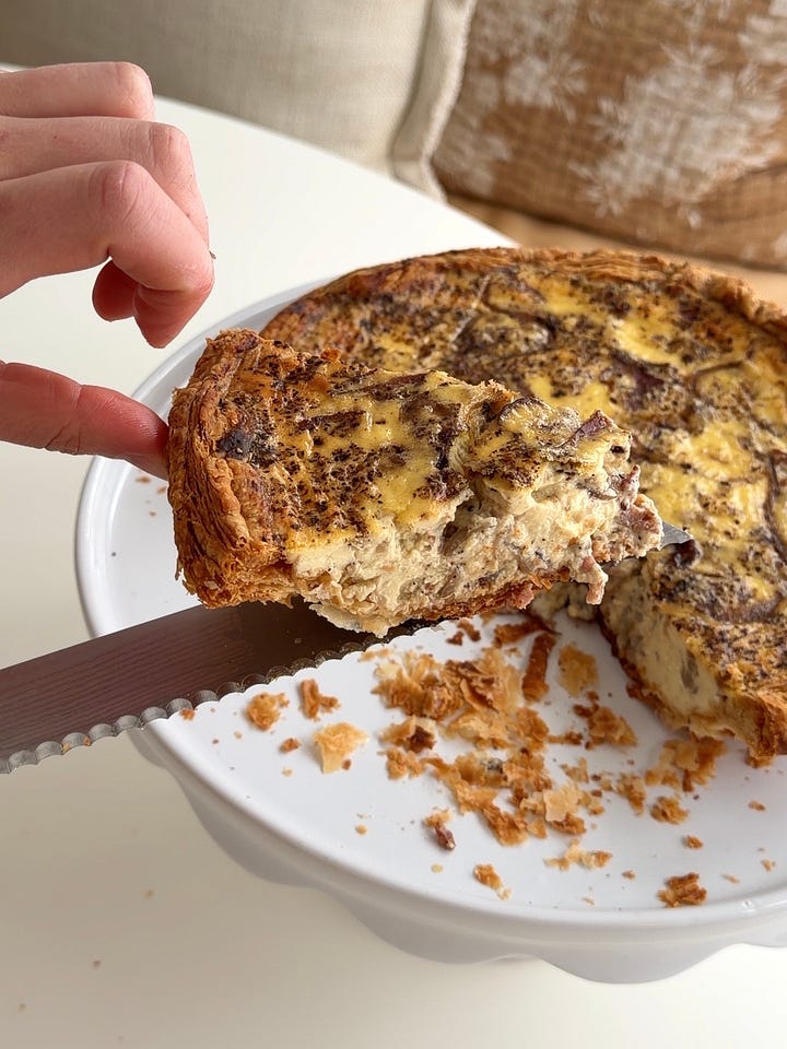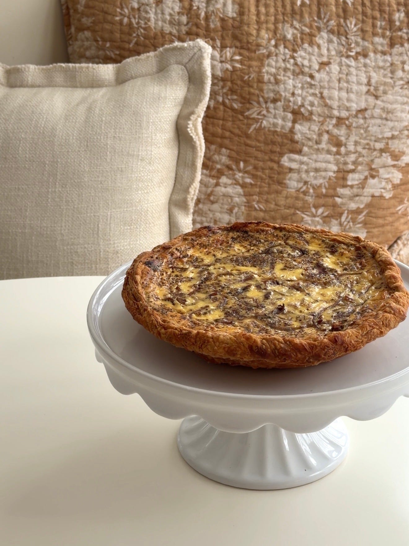 These days, I feel like the only place I ever see quiche is at the farmers market, maybe the odd cafe, but those sightings are few and far between. It feels like the kind of thing everyone knows about, but hasn’t had its moment since pre-2000. But like all things, I’m sure the trend will come back, even if I have to carry it on mine.